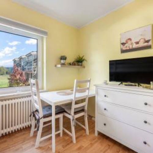 Das Apartment bietet Ihnen ein durchdachtes Raumkonzept mit lichtdurchfluteten Wohnbereichen, einer voll ausgestatteten Küche und einem gemütlichen Schlafzimmer, das zum Abschalten einlädt. Auf dem Balkon oder in der Lounge-Ecke können Sie nach einem erlebnisreichen Tag entspannen oder den Abend in Ruhe ausklingen lassen.